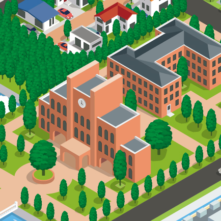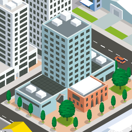「知と学びの交流拠点」として2022年に新築開館。豊富な蔵書に加え、学習・交流スペースやカフェを備え、地域文化の発信と多世代の学びを支える開かれた図書館です。200万冊を収蔵する地下書庫や、イベント利用も可能なだんだん広場、学習空間を菱機工業が担当。空調・換気の工夫で快適な環境を実現しています。