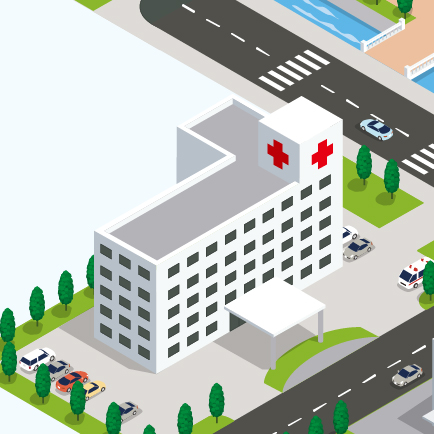 新潟県央基幹病院は、三条市に位置する高度急性期医療を担う地域中核病院。災害時も医療継続が可能な免震構造を備え、救急・周産期・がん医療を中心に県央地域の医療拠点として機能しています。各種災害発生時も病院機能が継続できる様々な設備対策(BCP)や、医療従事者と患者の両方の利用に適した機器器具配置を特に考慮して、施工されています。