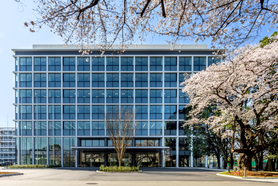 免震構造を採用した鉄骨造7階建てで、再生可能エネルギーと格子フィン外装による省エネ設計。採光・日射制御に優れ、災害時も機能を維持する高度な事務拠点です。