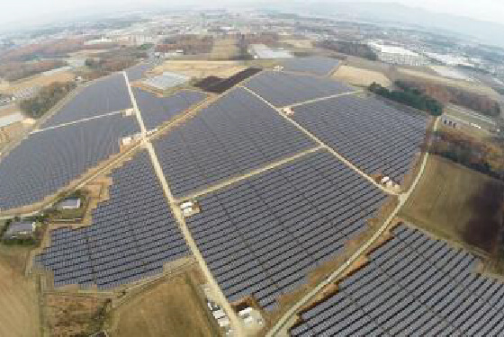 ゴルフ場跡地の約20ヘクタール(東京ドーム4個分)に約6万7千枚の太陽光パネルを設置。最大出力1万4520kwで、5千世帯分の年間電力をまかなうことができるメガソーラー施設です。